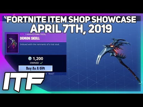 The video with titled Fortnite Item Shop *NEW* DEMON SKULL HARVESTING TOOL! [April th, ] (Fortnite Battle Royale) published by I Talk Fortnite with Channel ID UCIZP6nCTyU9VV0zIhY7q1Aw At 08 04 2019 - 00:03:02